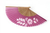 Foldable Hand Fan Made of Arimatsu Tie Dyeing Fabric with Flowers White on Pink