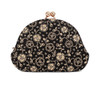 INDENYA Kiss Lock Coin Purse 1104 with a Camellia Pattern, White on Black