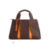 KOSHO ougi Canvas Hand Bag FS with leather tassel, Brown/Orange