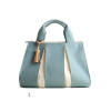 KOSHO ougi Canvas Hand Bag FS with leather tassel, Sky Blue/Ivory