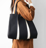 KOSHO ougi Extra Large Canvas Tote Bag with snap button LH-B, Black/Ivory