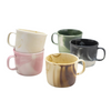 Moiscup in a creatively design mug cup with a traditional, nostalgic shape. The sandblasted finished, which is very rare in pottery, has been retained, while the handle has been slightly angularized for more ease of use. The cups come in classic plain colors, and modern "latte" colors. The Latte series, with marble inside and out, are perfect for when you want to relax with a rich and milky drink.