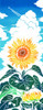 This summery tenugui portrays a big sunflower rising up towards the bright blue sky. In the back ground a plane is taking off from behind the clouds. A real "feel food" tenugui that will brighten up the mood in any room.