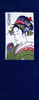 This tenugui from Rienzome feautures a beautiful Ukiyo-e picture of a well off young woman. From her Kimono to her hair ornaments, it is clear that this lady is from a rich family. The description of the original painting suggest love is hard to come by for women raised in a protective rich family...