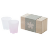 These glasses come in a "clear" and "pink" color and come in a beautiful box, ready to gift as a present or souvenir. The Set of 2 has one of each glasses in a larger gift box and is a perfect gift for weddings and families. This series is the FROST style series, where it looks like the glass is frozen from the inside!