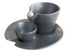 The SHIZURU sake set has been designed to best serve cold sake. The designer, a big sake lover himself, designed this set to fit exactly one person, as he very much to enjoyed sake even by himself and felt that one should be able to enjoy beautiful ware even - or especially- by oneself. The cup and container naturally find their way on the plate and have proper balance due to the designed spaces.